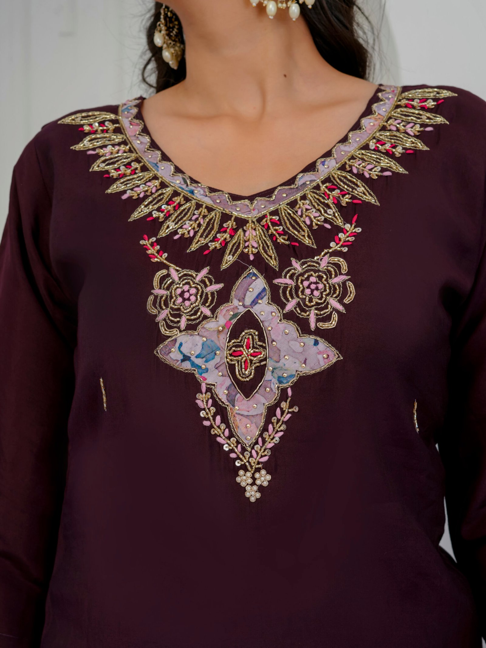 Bottom Color: Deep Plum / Wine / Burgundy (Matching the Kurta)